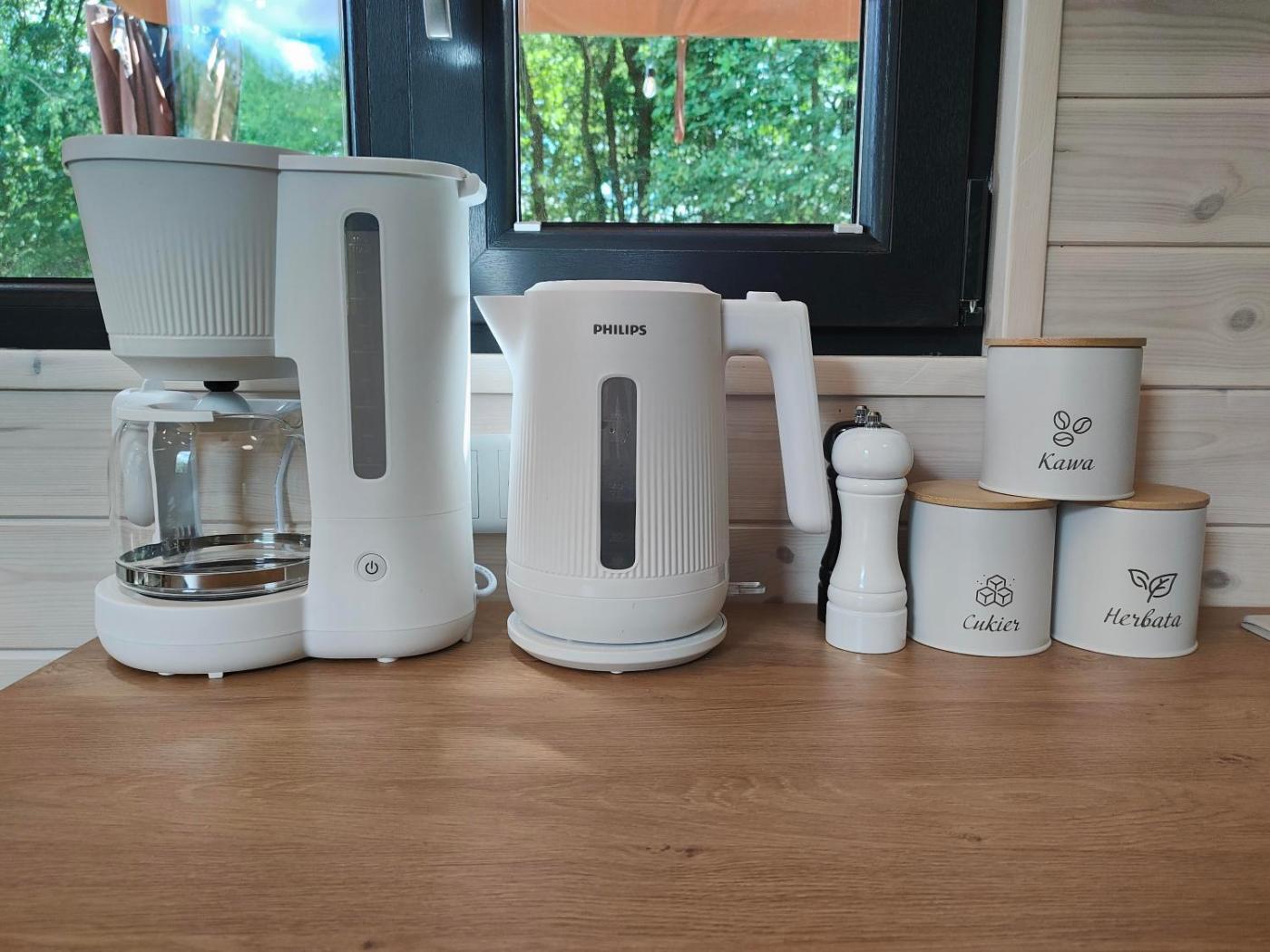 Domek. Featuring a private entrance, this air-conditioned chalet consists of a kitchen, 1 bedroom and 1 bathroom with a shower and a hairdryer. Guests will find a stovetop, a refrigerator, kitchenware and a microwave in the well-equipped kitchen. The chalet also offers a barbecue. Boasting a terrace with garden views, this chalet also provides soundproof walls and a flat-screen TV. The unit offers 3 beds. Domek - 5 osobowy. Powierzchnia pokoju ok.: 22 mkw. ;