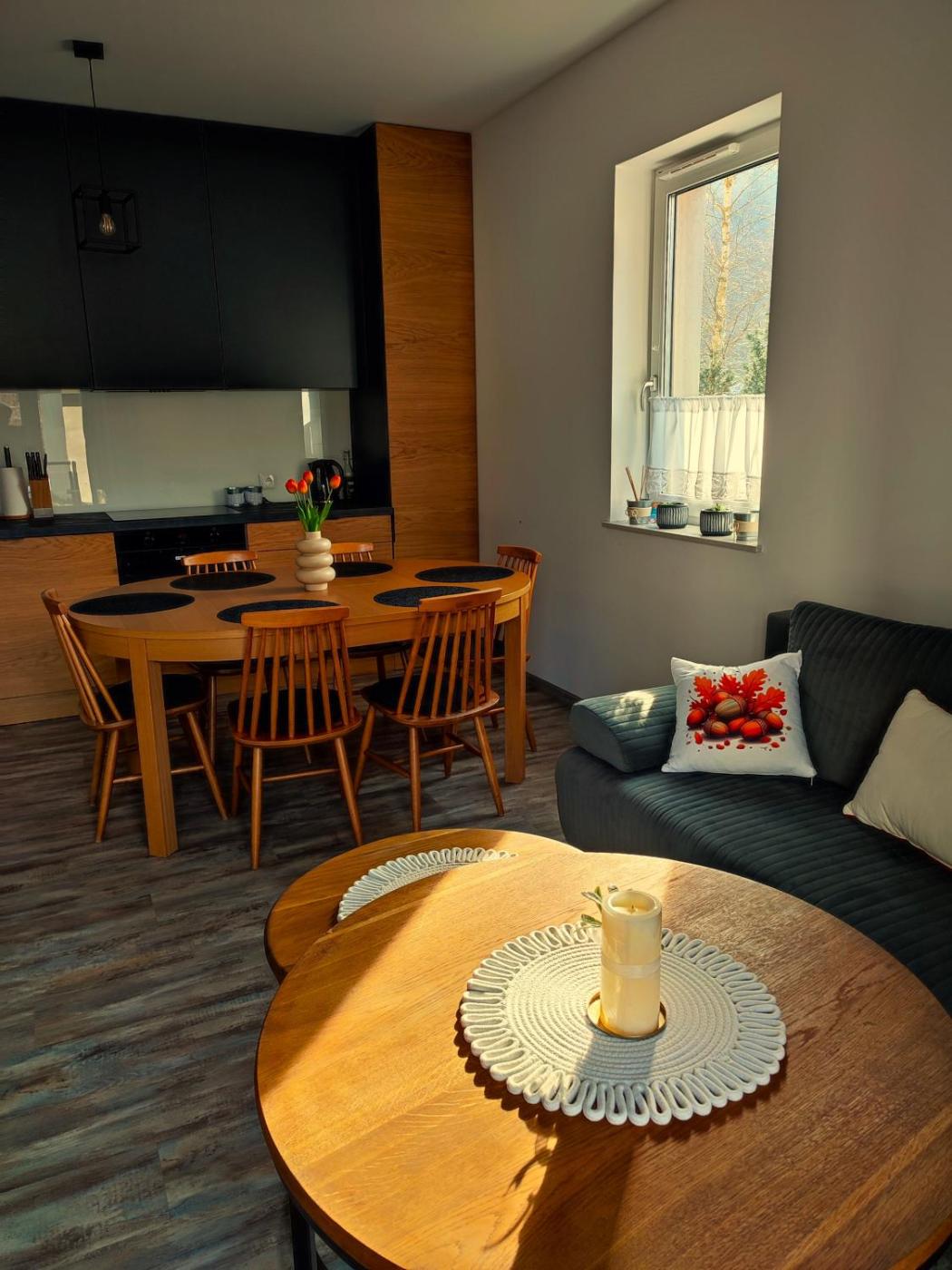 Apartament. Featuring a private entrance, this apartment comprises 1 living room, 1 separate bedroom and 1 bathroom with a shower and a hairdryer. Guests will find a stovetop, a refrigerator, a dishwasher and kitchenware in the well-fitted kitchen. The apartment also provides guests with a barbecue. Boasting a terrace with garden views, this apartment also provides a washing machine and a flat-screen TV. The unit offers 2 beds. Apartament - 5 osobowy. Powierzchnia pokoju ok.: 35 mkw.